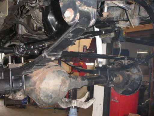 See how much higher it is compared to the original set-up? No need to take off the original stuff yet, it's not even close to being in the way !! Pics below show the installed set-up, as Jeff said: "Leave the original stuff on untill everything is tightened, and only than take it off" which I did, took it to the garage to have toe in/out checked and that proved to be a waisted trip: it was like original ! You can see it's way up over the axle and springs !