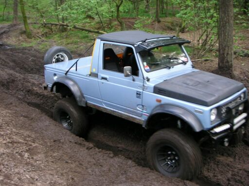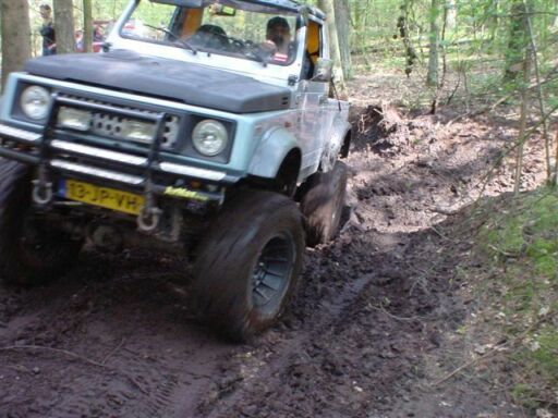 On this page I'll put the pictures of the brave little Samurai during Off-Road events Due to my limited webspace at the provider I decided to remove all the big pictures behind the thumbnails on the "SAMURAI"pages, if you want any of the pics in a bigger size, mail me and I will send them to you ! First event I went to with the Samurai ( ánd the Chevy ) after owning it for about 2 weeks was an ANVT event in Overloon on the 31st of October 2004. Standard apart from the "COLWAY" 215x15 tires, which worked surprisingly well !! We were overall very surprised of what such a small car could achieve in the mud, me only being used to the 6.2 liter diesel V8 power of the Chevy.